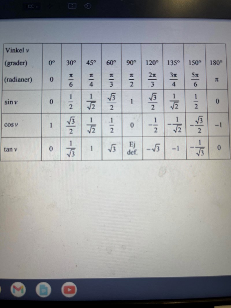 Men det står inte i formelbladet vad arcos av sqrt2/2 är. Man får inte använda miniräknare . Det står bar vad pi/4 är