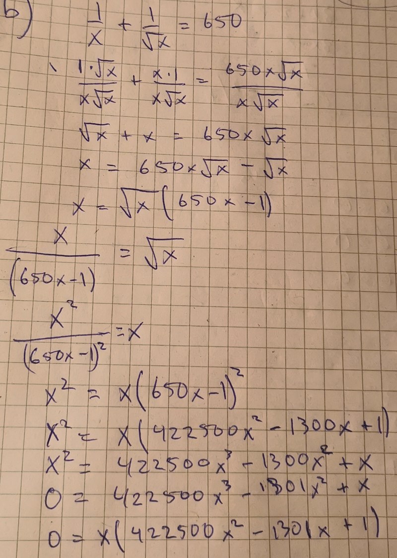 Hur löser jag 422500x^2 - 1301x + 1 på ett smidigt sätt. Så inte jag trycker in massa siffror i pq formeln och får ut fel värde av slarv eller en himla massa decimaler.