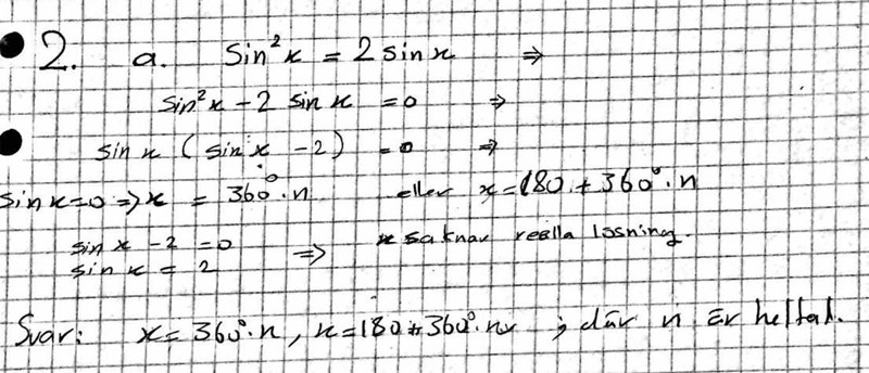 tomast80 skrev :Det ser bra ut. Går dock att skriva båda svaren lite mer kompakt med perioden 180 grader: