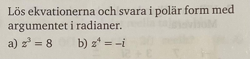 Lös ekvationerna och svara i polär form