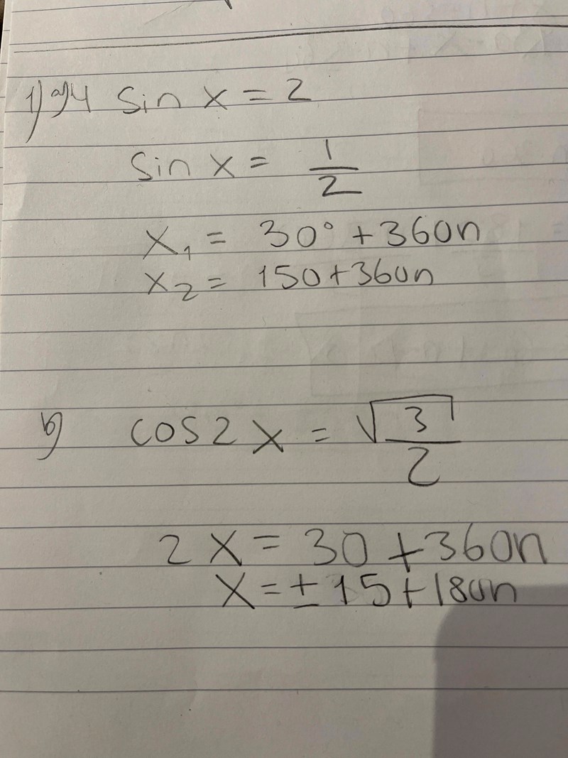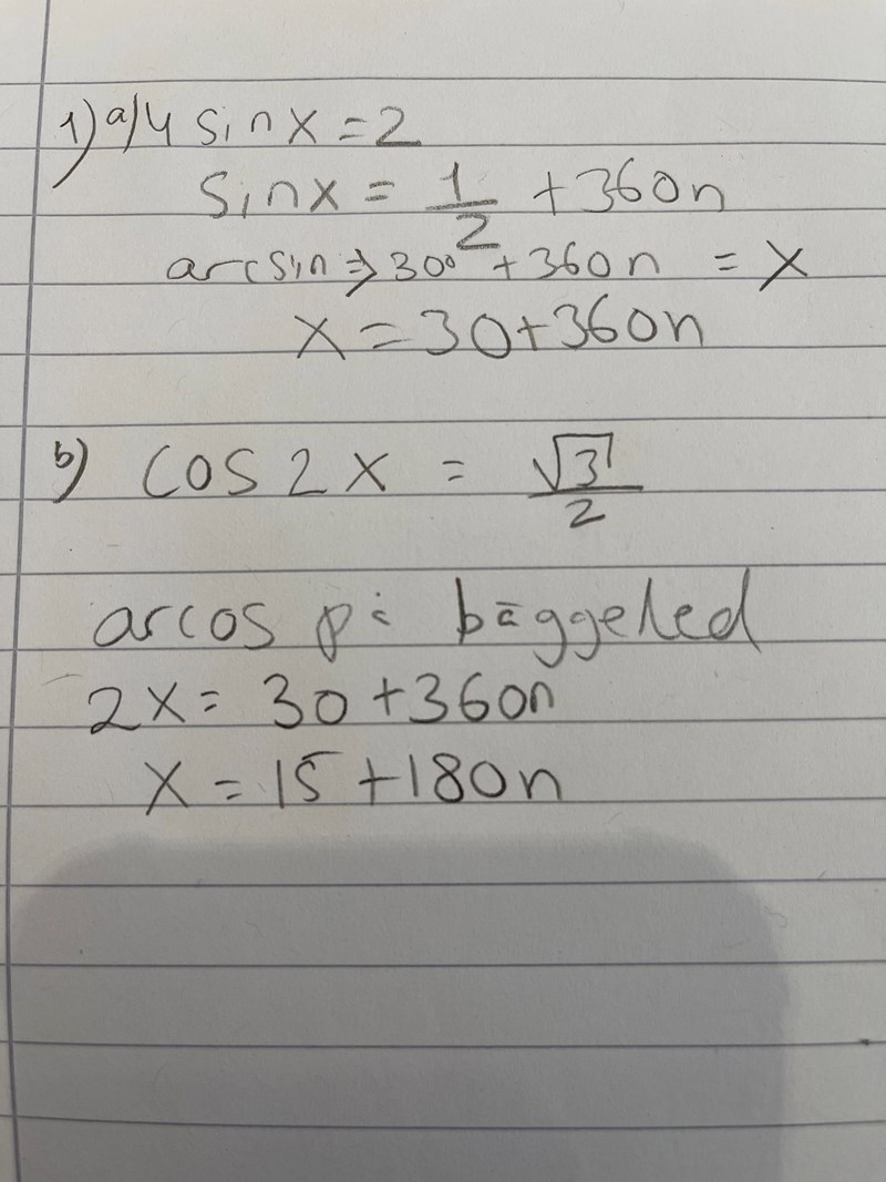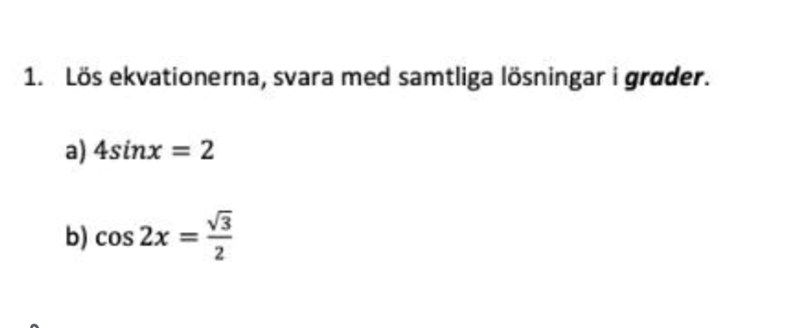 Jag har bara kollat igenom a) men du har missat en lösning. Sedan ska du lägga till perioden efter du tar arcsin, inte före.