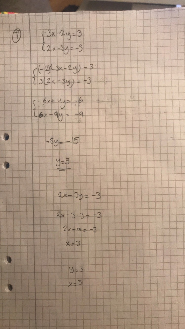 3x - 2y = 3 multiplicera med -2