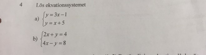 Det finns 3 standardmetoder för att lösa linjära ekvationssystem med 2 ekvationer och 2 obekanta: