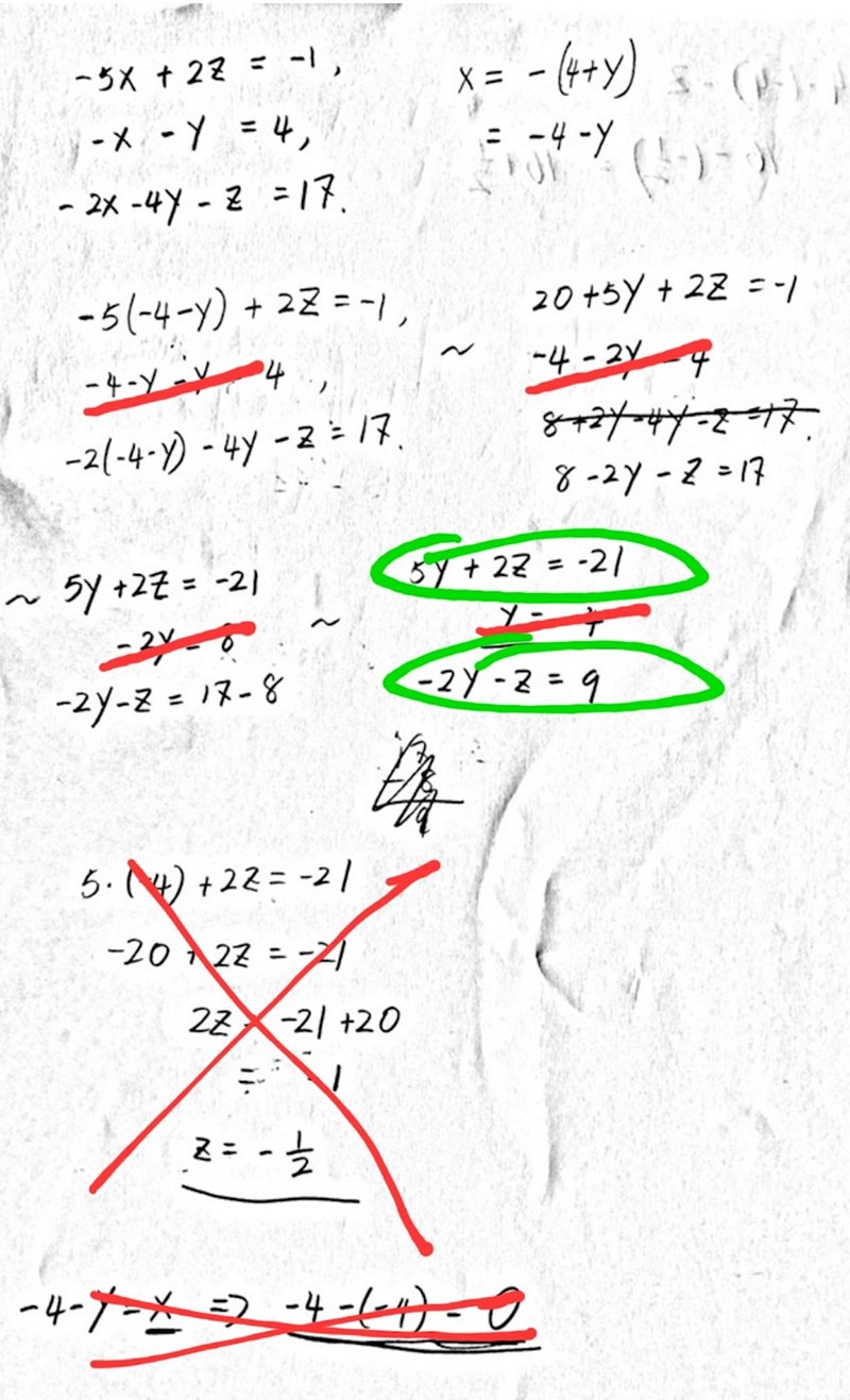 Jag har rödmarkerat det felaktiga och grönmarkerat de två ekvationer du bör fortsätta med.