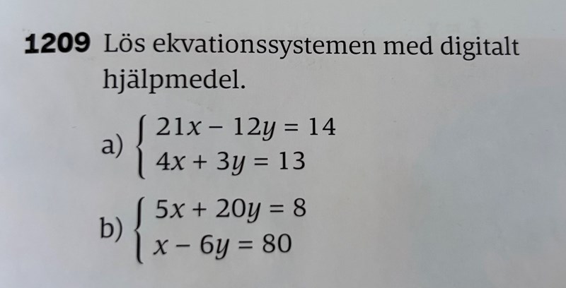 Hej! Jag har fått i uppgift att lösa ekvationer med hjälp av digitalt hjälpmedel. (Bifogar uppgiften nedan).