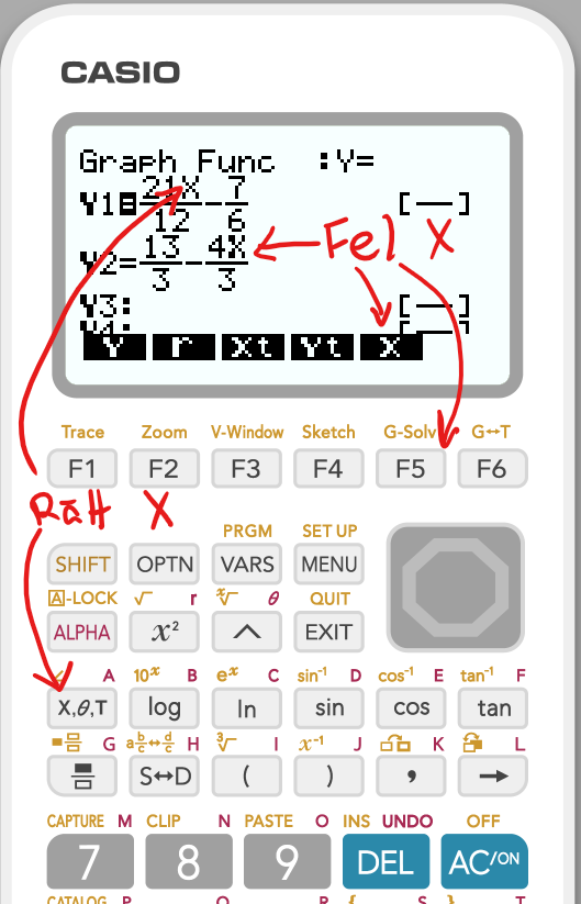 Minustecken (kort/långt) och decimaltecken (punkt/komma) kan vara lite luriga på olika räknare.
