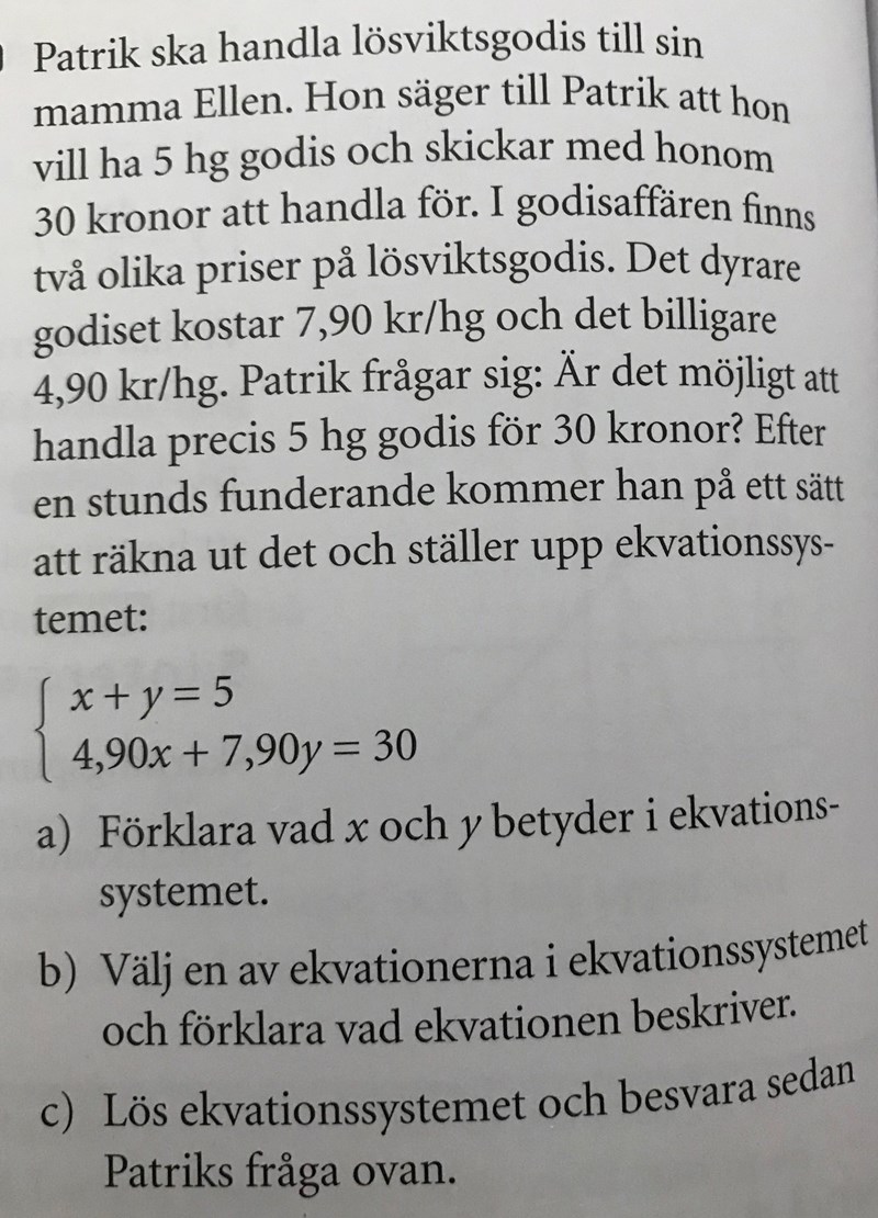 jag förstår frågan och kan svara dem, men del c) jag kan bara med hjälp av grafritande räknare. Finns det andra metoder för lösningen utan hjälpmedel???