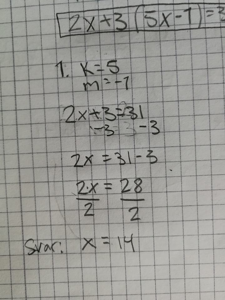 2x+3(5x-1)=31 à 15-5=31 à -5x+15=31