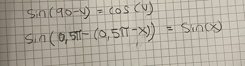 sin(2x) = cos (0.5π-(0.5π- x) för 0 < x < 2π