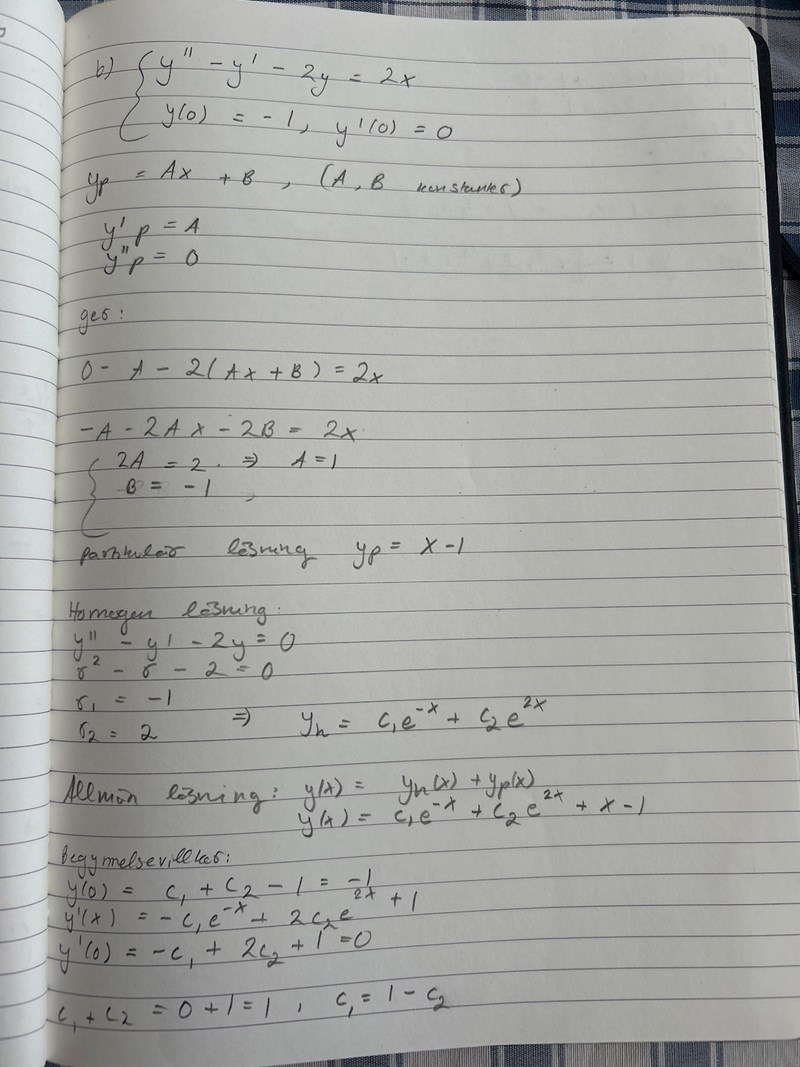 Laguna skrev:Partikulärlösningen håller jag inte med om.