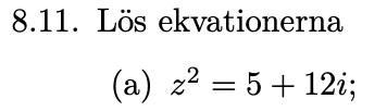 Dualitetsförhållandet skrev:Laguna skrev:Skriv 5+12i polärt så är det lätt att hitta z.