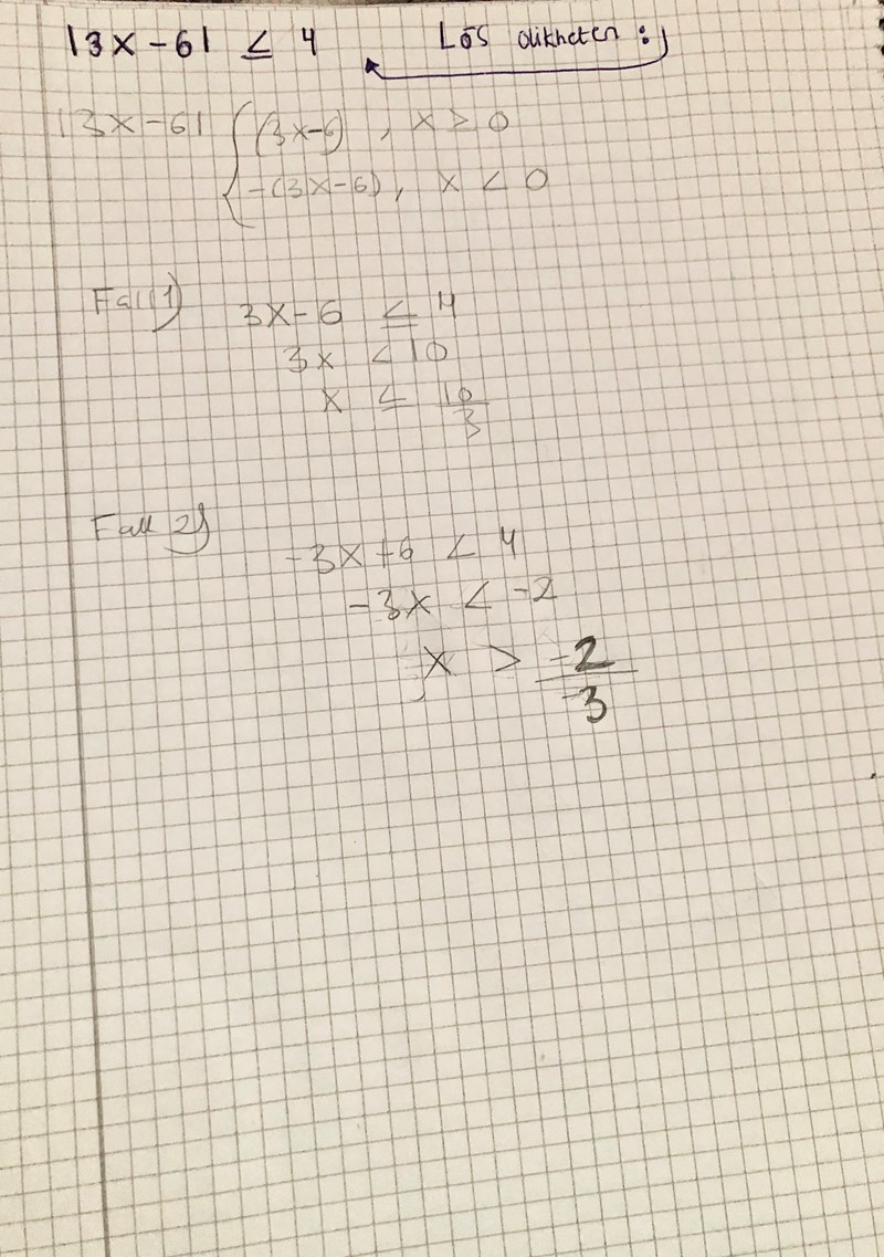 Vart är felet i min uträkning? Facit säger att x1 < elr lika med 10/3 och att x2 är större elr lika med 2