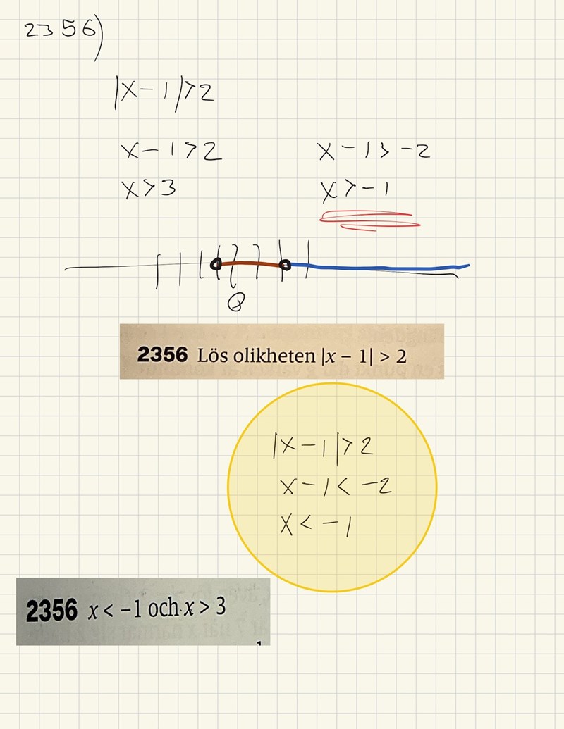 maratmatorkin skrev:Ture skrev:när x < 1 är innehållet innanför beloppstecknet negativt, för att få det positivt kan man multiplicera med -1 vilket är samma sak som att byta tecken på alla termer som finns innanför beloppstecknet