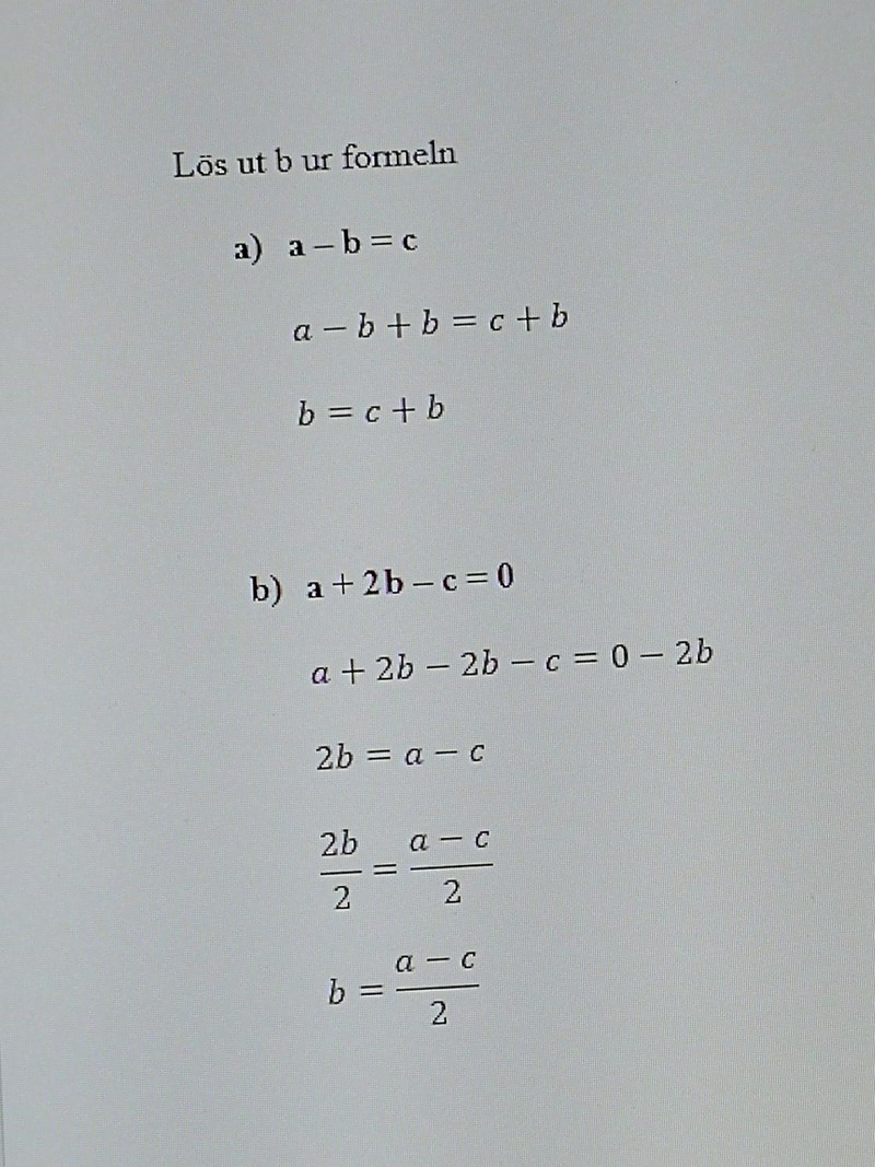 Man skulle också kunna ha skrivit "Lös ut b" eller "Lös ekvationen för b" som rubrik till dina exempel.
