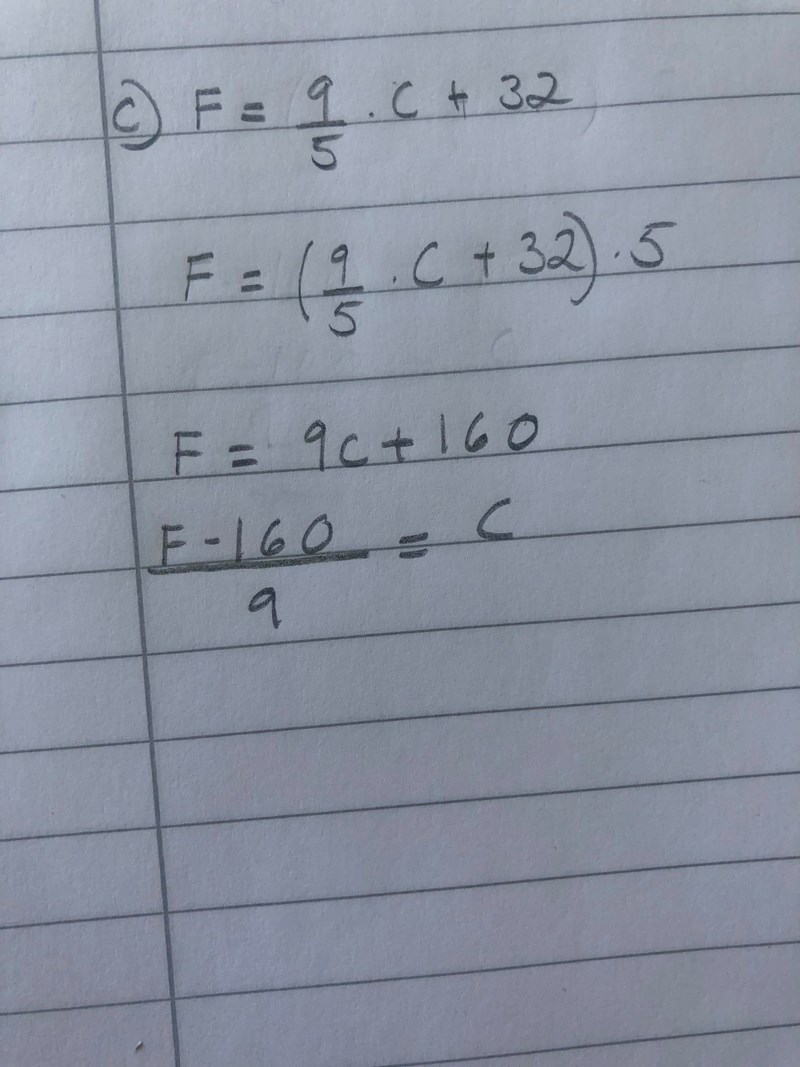 (9/5)C = F - (160/9)(9/5)