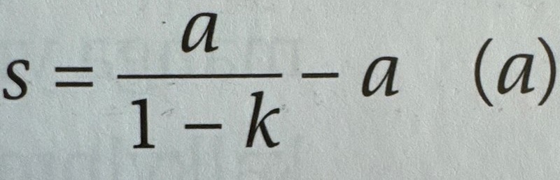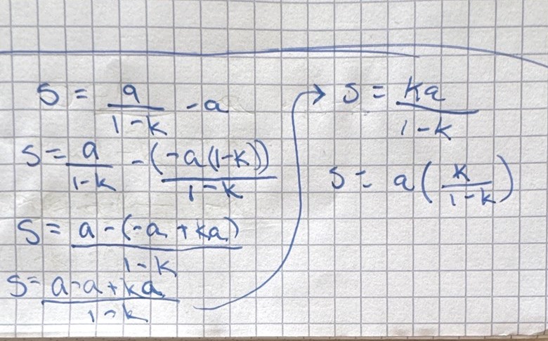 det enda jag lyckats komma fram till är att s (1-k)=a-a men det tror jag är otroligt fel. För i så fall skulle det ju stå noll i höger led och det funkar inte för då har man inte löst ut a.