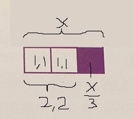 Så ekvationen blir x - 2,2 = x/3. Eller x = 2,2 + x/3. Edit: rättat.