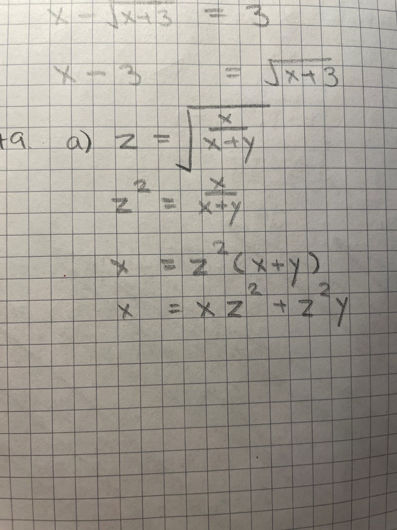 Hej! Jag är på uppgift 2179 a och fattar ingenting. Jag började med att kvadrwra båda leden men hur går man vidare? Man kan ju inte dela med x+y på båda sidor för då går det ju inte att lösa ut x:et????