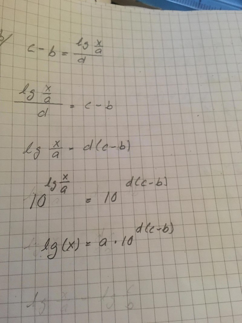 Det gäller att 10^lg(x/a) = x/a, inte lg(x)/a.