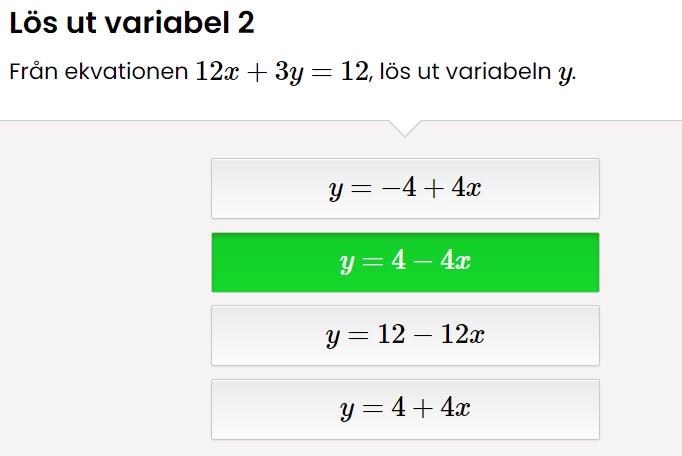 Vet inte hur jag ska börja, ska man ta /3y och kvar blir y i VL? Men vad gör jag sedan med 15x, -15x flyttar över talet till HL men varför har det blivit -4x i svaret?