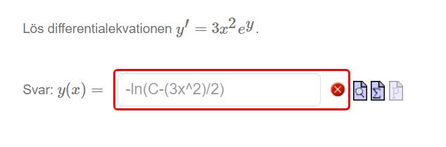 Micimacko skrev:Integrera om högersidan. Du borde alltid testderivera när du har integrerat något