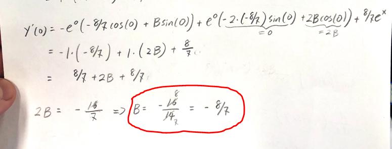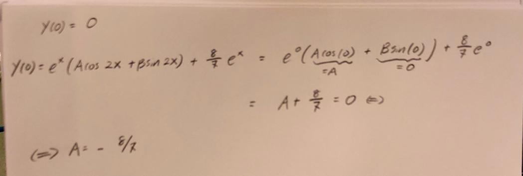 Genom att sätta in y(0)=0 fick ja A=-8/7.