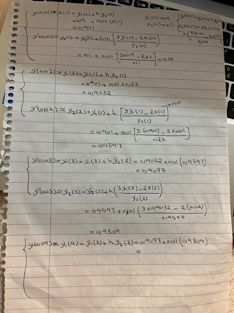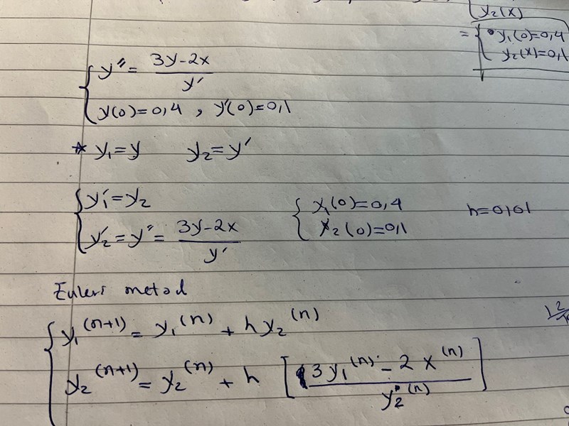 Hej! vi har en uppgift där vi ska skriva om en ekvation till ett system av första ordnings ekvationer med Eulers metod och lösa problemet med Excel, där jag ska också använda steglängd h = 0.01.