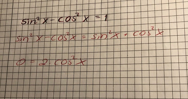 Jag ska lösa ekvationen på första raden. Jag började med att skriva om 1 enligt trig.ettan. Men efter det verkar jag ha fastnat. Dividerar jag det på sista raden med 2, får jag cos ^2 x= 0.