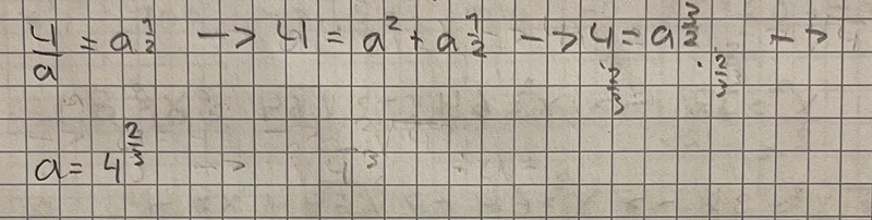 Nu kan du höja upp båda led med 2/3. Potenslagarna borde förklara varför det fungerar.