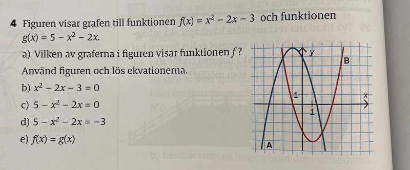 På b-uppgiften ska du med hjälp av figuren lösa ekvationen f(x) = 0. Ser du det?