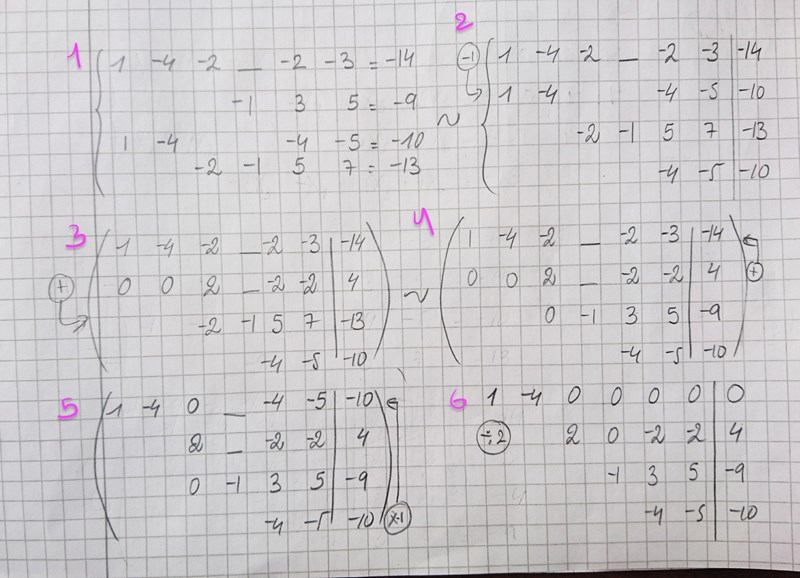 Om du byter plats på raderna lite, så behövs inte så många radoperationer för att ställa upp systemet på trappstegsform. (inte reducerad)