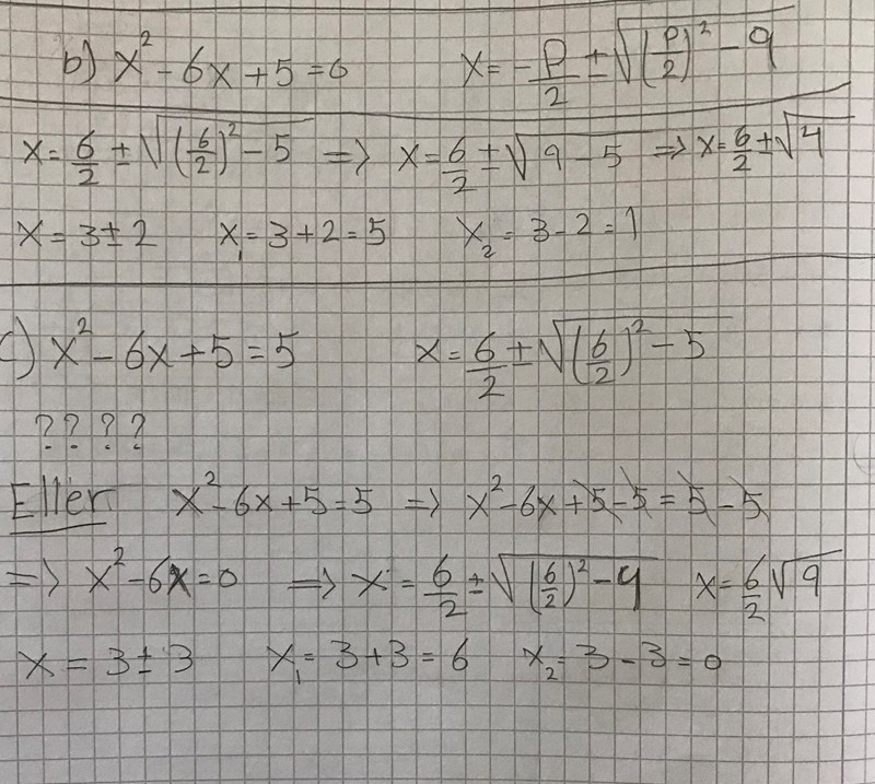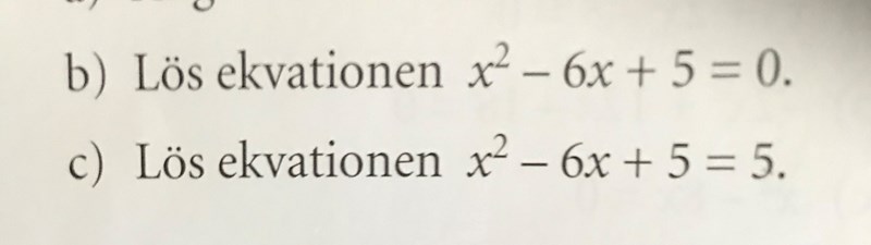 c)  Lös ekvationen  x^2 - 6x + 5 = 5