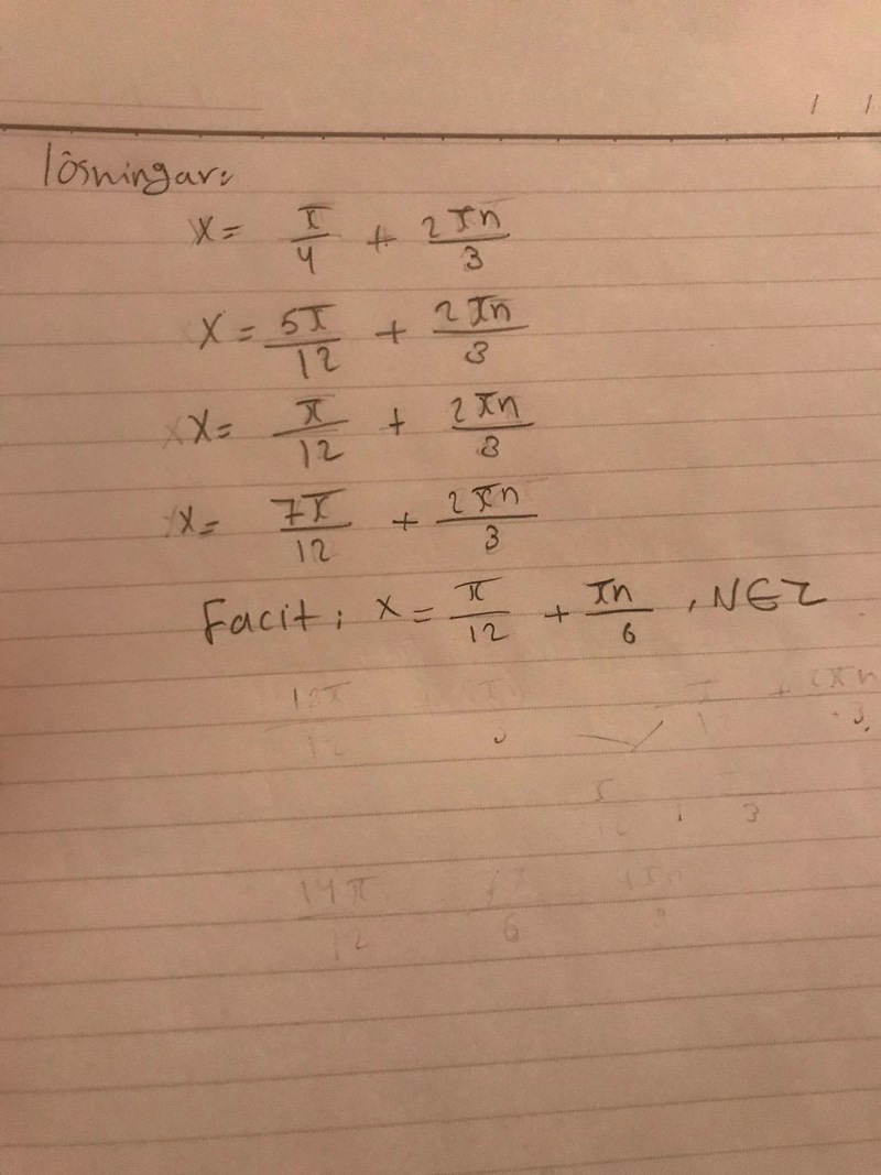I facit står att x=π/12+ πn/6