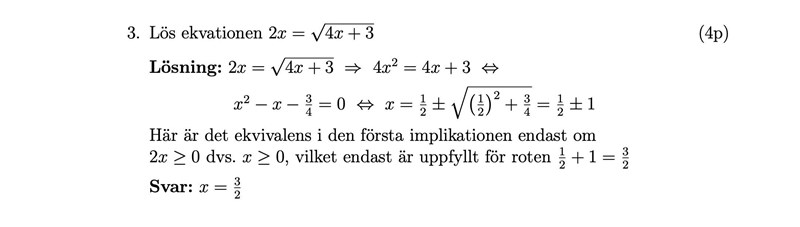 Vi vill att det ska vara en ekvivalens, så att vi kan säga att implicerar att den givna ekvationen är sann.