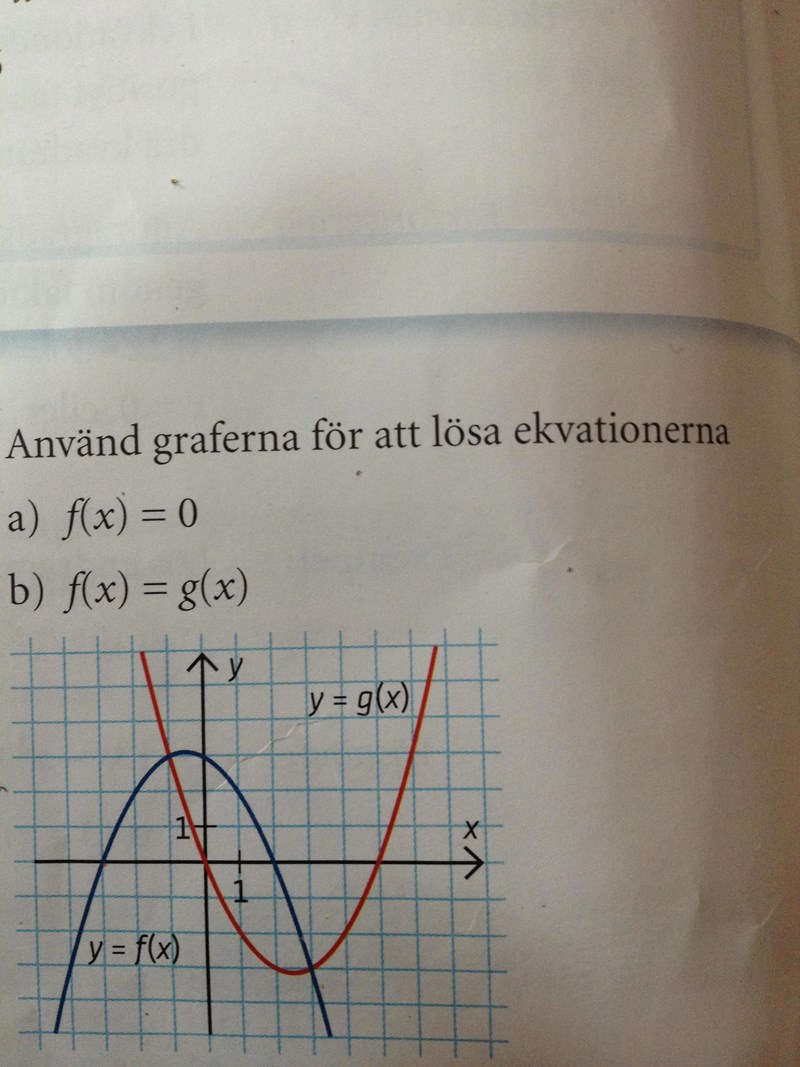 På b uppgiften, för att funktionerna ska vara lika, vid vilka x-värden händer det? Ser du hur du ska få fram det ur figuren?