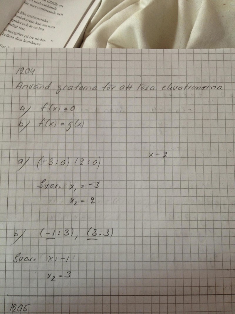 Lösa ekvationer från graferna.
