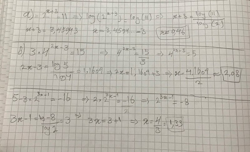 Om du har Här ser du ju att baserna (2) är likadana. Du behöver inte logaritmera