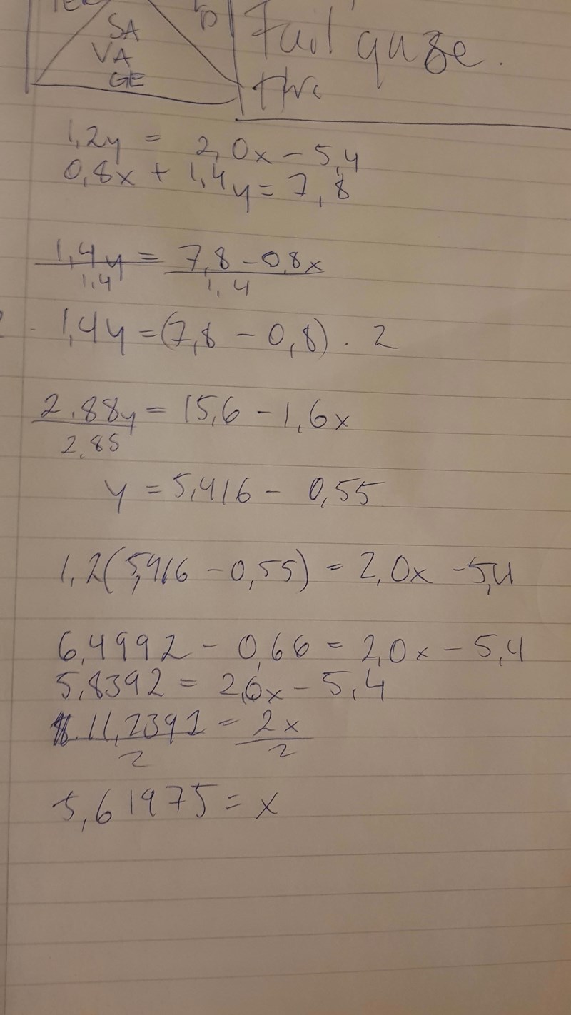 Men framför allt har du tappat x när du delade 0,8x med 1,4.
