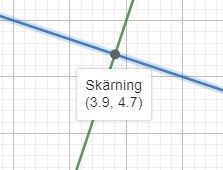 Gör ett försök att läsa av skärningspunktens koordinater.