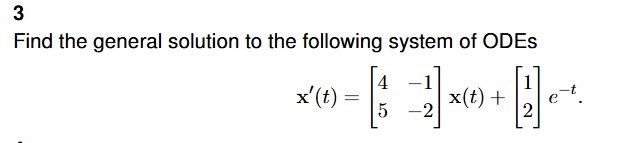 Alla lösningar till den homogena ekvationen PLUS en partikulärlösning till den givna ekvationen.