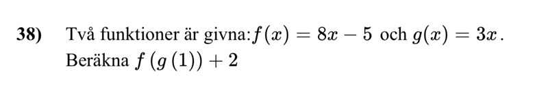 8x-5(3)+2 då trean där är g(1) och föregående funktion f och +2 själva uppgiften. Vad gör jag fel?