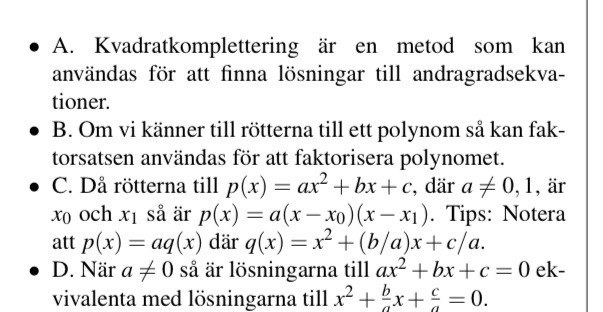 … så har ax2+bx+c = 0 samma lösningsmängd som x2+(b/a)x + c/a = 0.
