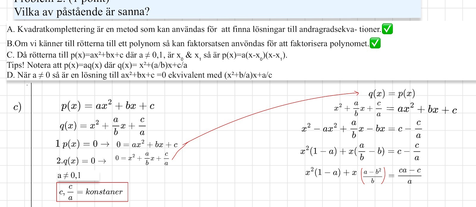 Sätt in i ekv för pB : a[x2 + (b/a)x + c/a] = ax2+bx+c