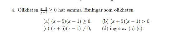 Micimacko skrev:B är inte rätt svar för att - 5 löser olikheten i frågan men inte olikhet b.