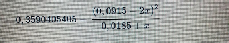 Vid beräkning av kemisk jämvikt uppstår det ganska jobbiga ekvationer att lösa ut med pq-formeln. Ex har jag fastnat på bifogade uppgiften. Har någon ett tips/ en strategi på hur man löser sådana ekvationer på ett smidigare sätt?