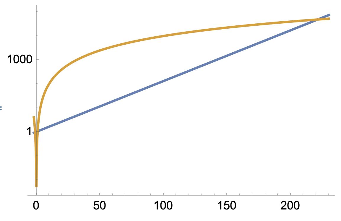 här får man dock se upp då t-axeln är en log-skala. Log-plot kanske då är bättre;