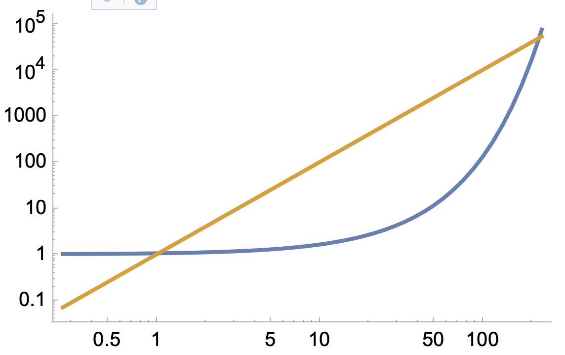 Har Geogebra log-log-plot så kan det bli tydligare på den positiva sidan, men man får se upp med den negativa;