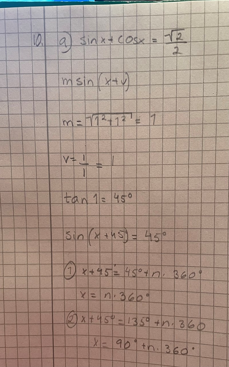 Nästa fel är att v = 1/1 = 1. Det du menar (eller i alla fall borde mena) är att arc tan (v) =1. Sedan får du fram rätt vinkel. Resten är fel eftersom du har fått fel amplitud.