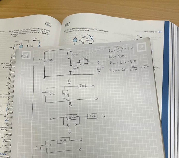 Tillägg: jag ser nu att det möjligtvis är fel i facit och att Rth nog visst ska vara 9ohm men varför blir Eth fel…? Varför ska det vara hälften av spänningskällan?