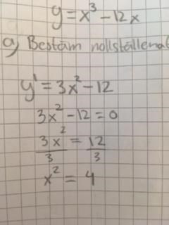 Uppgiften lyder: Du har funktionen y=. Bestäm nollställena till y` (prim).